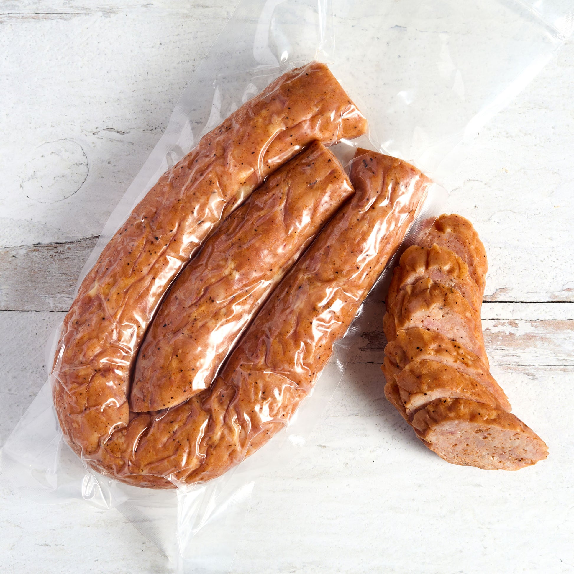 Your first bite reveals the lean texture and intense flavors that characterize our Chicken Andouille. The vibrant spices are instantly evident, followed by the smoky richness that you expect from an Andouille sausage—all without the extra fat.